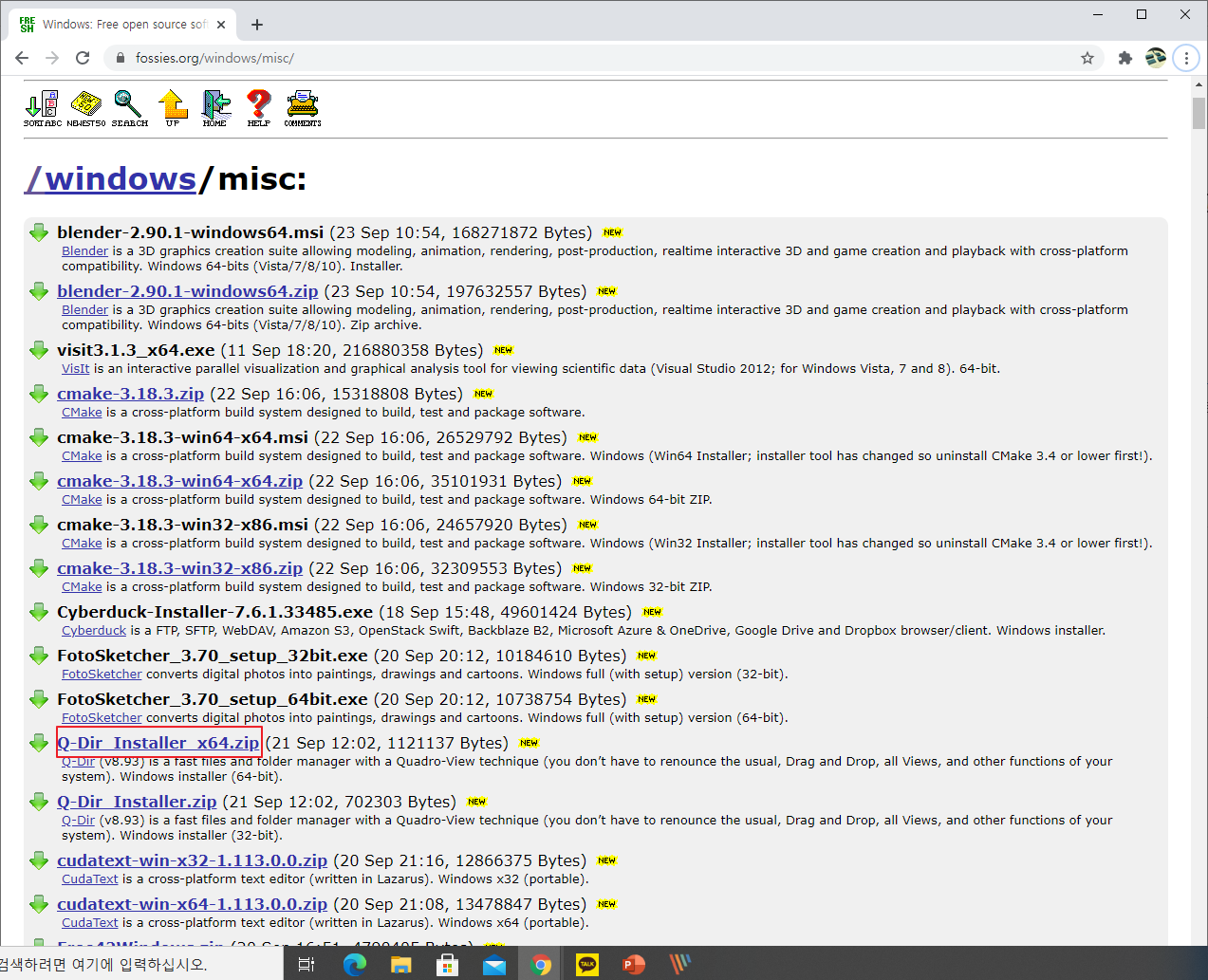 그럼 저의 경우 Windows의 Misc 부분을 클릭하였습니다. 여기에서는 보이는 바와 같이 많은 부분들이 존재합니다. 저의 경우 Q-Dir Installer을 다운 받을 예정입니다.