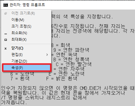 [윈도우10, windows10] 명령 프롬프트(Command Prompt) 색깔 바꾸기