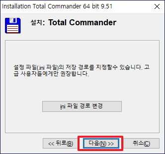 그리고 토탈 커맨더(Total Commander)를 설치할 폴더 경로를 설정하신 후에 [다음]부분을 클릭하여 주시길 바랍니다.