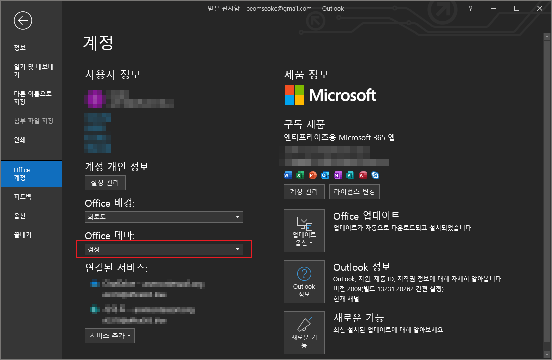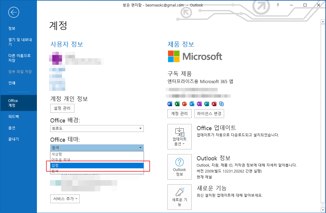아웃룩[Outlook 365] 테마 바꾸기, 다크모드(Dark), 그레이모드(Grey)