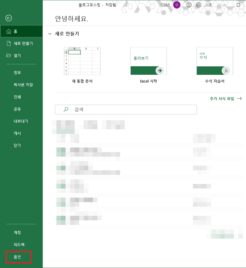 그럼 다음과 같은 화면이 나타날 것입니다. 여기에서 좌측 하단에 부분을 보시면 [옵션]이란 부분을 클릭하여 주시길 바랍니다.