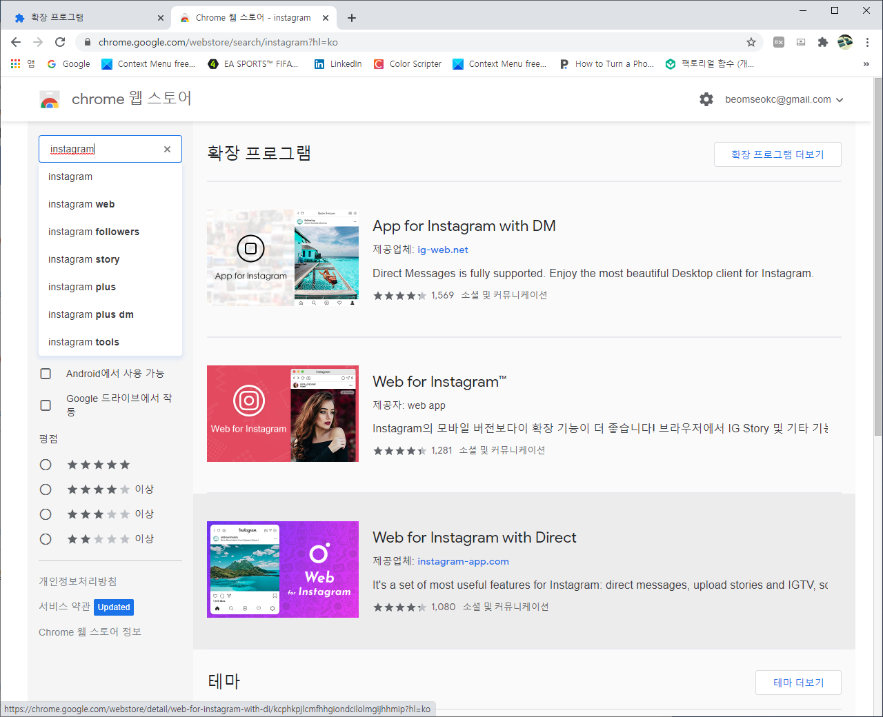 스토어 검색에서 Instagram 부분을 클릭하시면 다음과 같은 결과가 나옵니다.