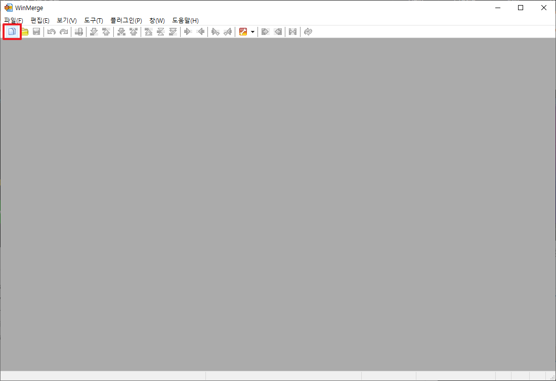그럼 WinMerge가 실행된 화면이 나타납니다. 좌측 상단에 있는 파일을 통해서 새롭게 시작하셔도 되고, 저와 같이 좌측의 아이콘을 클릭하셔서 새롭게 시작하셔도 됩니다.