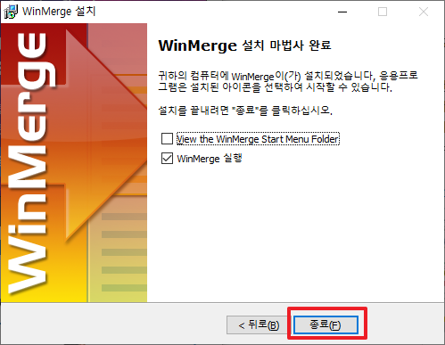 여기에서 WinMerge 설치가 완료되면, 다음과같은 화면이 나타납니다.