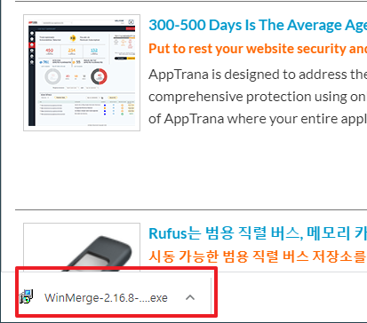 Appia 2020. 10. 21. 07:12[윈도우10 Windows10]무료 텍스트, 파일 비교툴(Text/File Compare) WinMerge 다운로드 및 설치하기