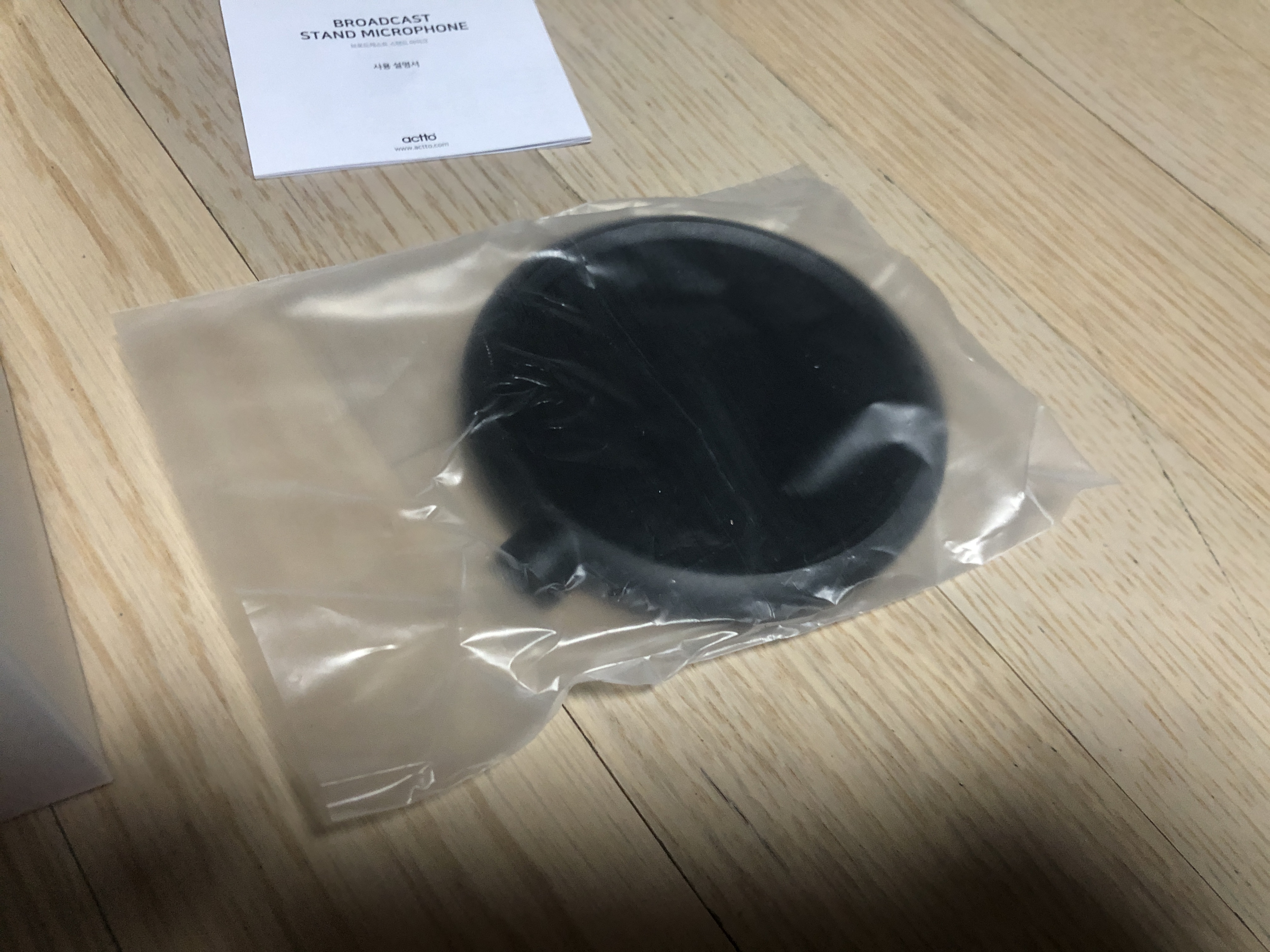 그리고 팝필터와 설명서를 빼 보면 마이크가 놓여 있습니다. 실제 조립 등이 매우 간단합니다. 가격 대비 포장 및 구성 등이 나쁘지 않은 듯 합니다.