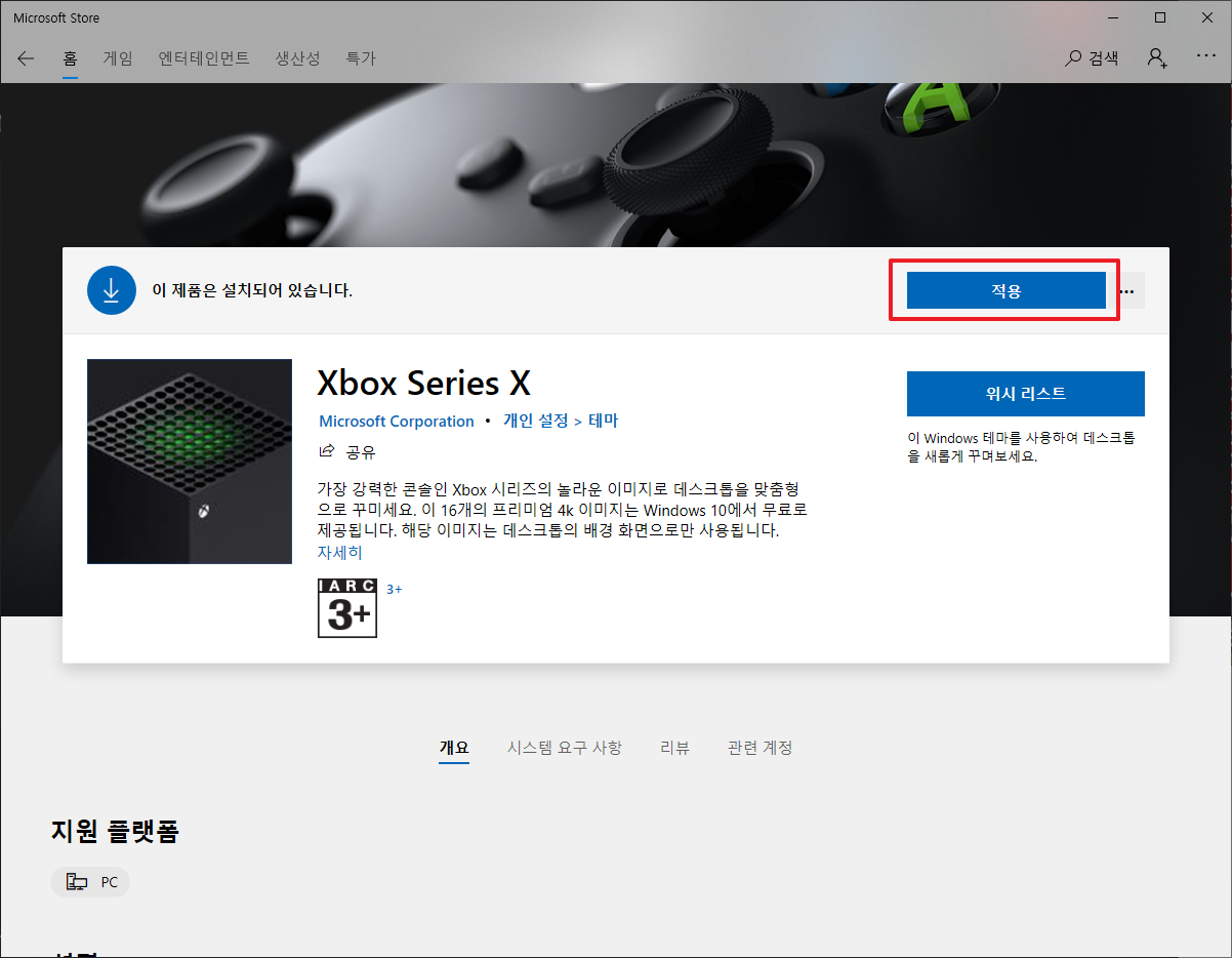 위와 같은 과정을 거치시면, Microsoft Store로 이동하여 Windows 테마 부분을 나타나게 됩니다. 그럼 다음과 같이 무료 테마등이 많이 있음을 알 수 있습니다. 저의 경우 Xbox Series X를 설치해보도록 하겠습니다.