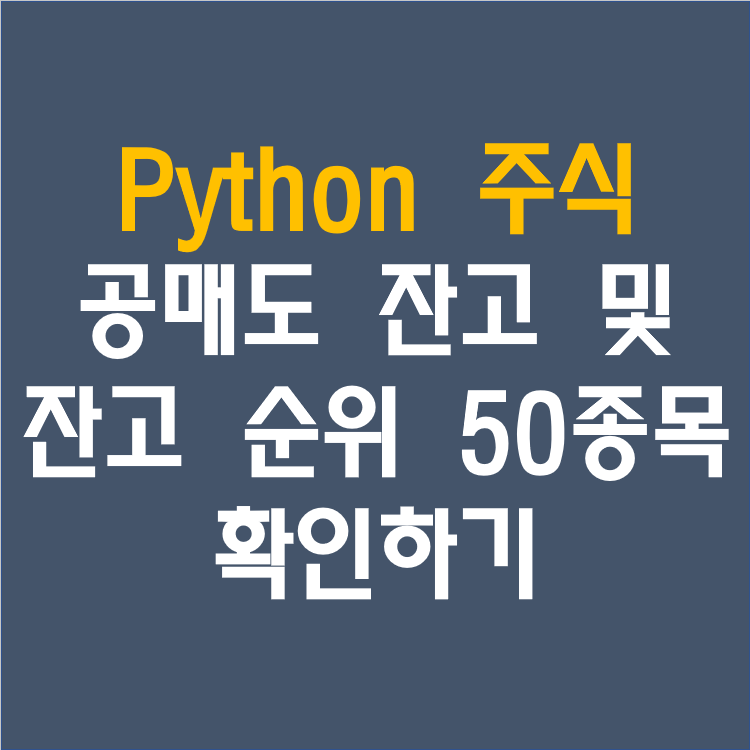 이번 포스팅에서는 Python[파이썬 주식] 공매도 잔고, 잔고 순위 50위 확인하기라는 주제로 공매도 관련된 포스팅을 진행해봤습니다. 혹 궁금하신 점이나 문의 사항이 있으시면 언제든지 댓글 및 방명록에 글 남겨주시길 바랍니다. 감사합니다.
