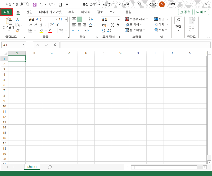 물론 메뉴바에서 우측 버튼을 활용하는 방법이 있지만, 메뉴 바에서 [파일] 메뉴를 활용하는 방법도 있습니다. 메뉴 탭에서 [파일]메뉴를 클릭하여 주시길 바랍니다.
