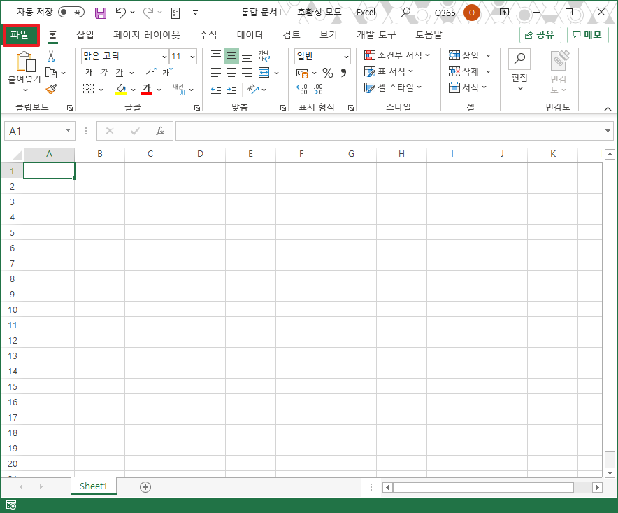 일단 상단에 보이는 [파일]부분을 클릭하여 주시길 바랍니다.