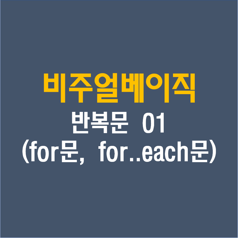 Appia 2020. 12. 2. 07:04비주얼베이직(Visual Basic, VBA) 반복문 살펴보기 01(for-loop, for-each loop)