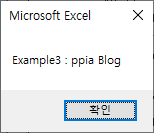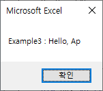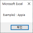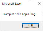 1 2 3 4 5 6 7 8 9 10 11 12 13 | Private Sub Left_example() Dim var As String var = "Hello Appia" MsgBox ("Example1 : " & Left(var, 2)) var = "Hi! Appia" MsgBox ("Example2 : " & Left(var, 5)) var = "Hello, Appia Blog" MsgBox ("Example3 : " & Left(var, 9)) End Sub | cs |