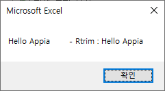 MsgBox "Hello Appia - Rtrim : " & RTrim(var)