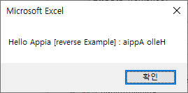 MsgBox ("Hello Appia [reverse Example] : " & StrReverse("Hello Appia"))