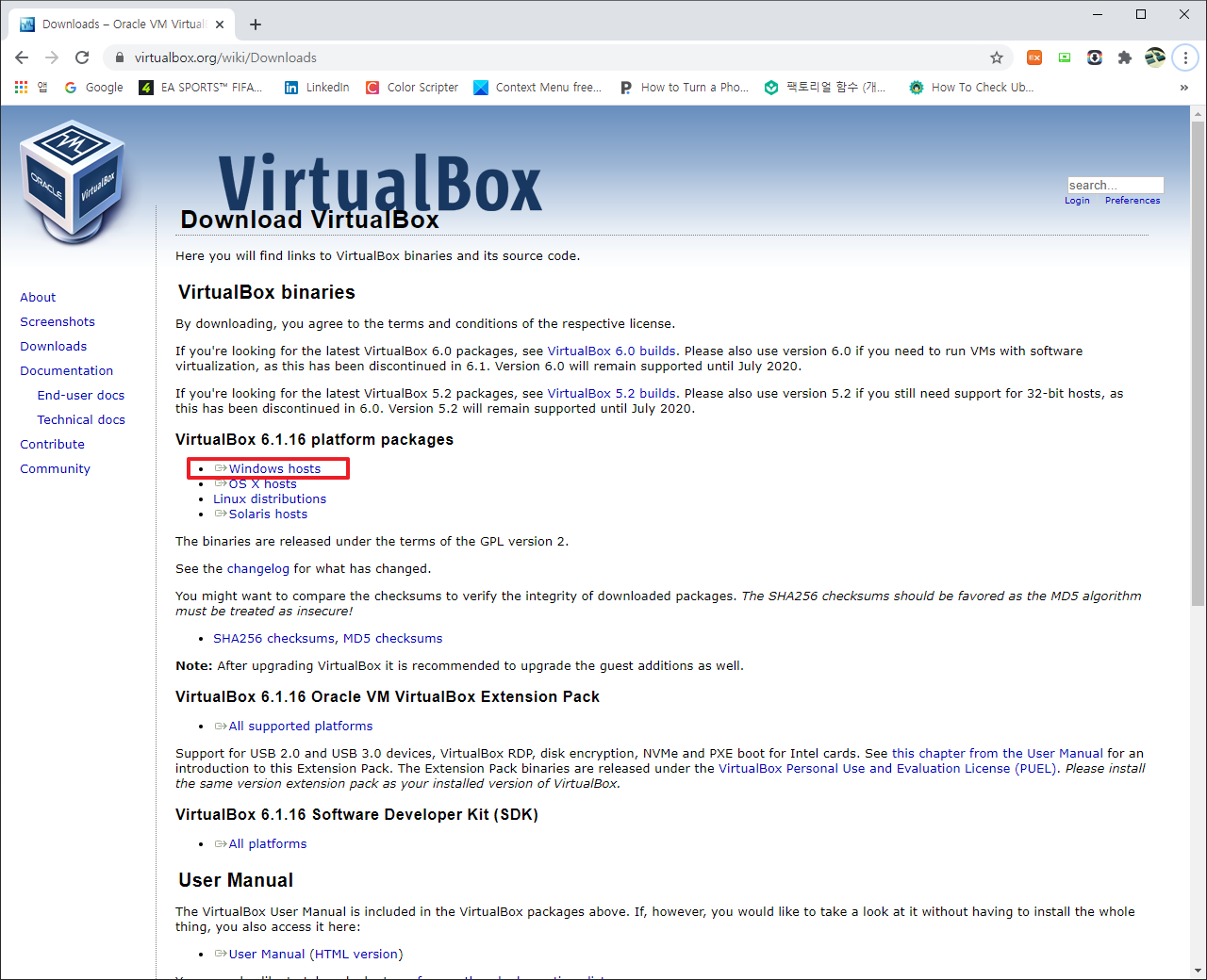 먼저 VM 버추얼박스(Virtual Box)를 설치 하기 위해서 다음 링크에 들어가셔야 합니다.