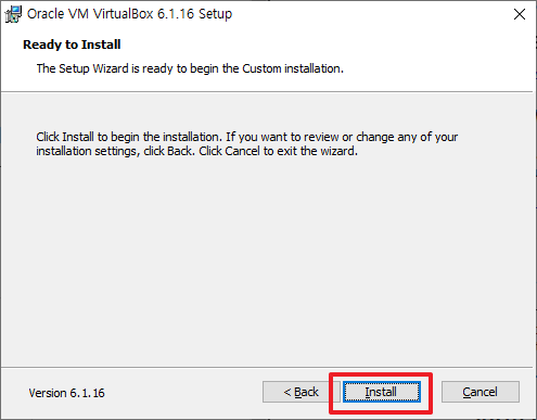 위까지의 확인작업이 모두 끝나면 설치를 위한 모든 준비가 끝난다는 것을 안내합니다. 그럼 이 단계에서, [Install]부분을 클릭합니다.