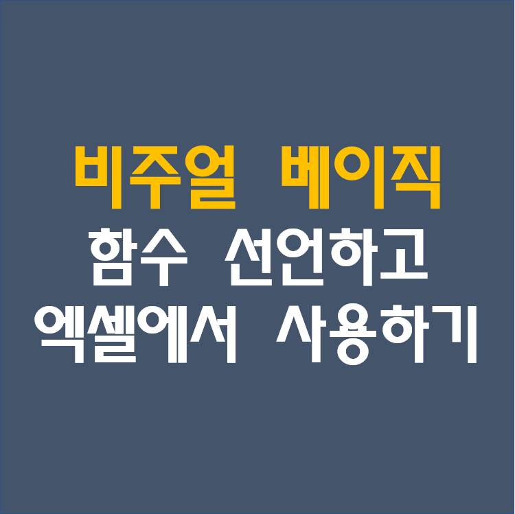 이번 포스팅에서는 비주얼 베이직에서 함수를 선언하는 방법에 대해서 이야기를 해보고자 합니다. 이렇게 비주얼 베이직에서 함수를 선언하는 가장 큰 이유는 바로, 사용자 정의 함수를 사용하기 위해서입니다. 물론, 이렇게 선언된 함수들은 비주얼 베이직 내에서 사용될 뿐 아니라, 엑셀 에서도 호출하여 사용할 수 있습니다.
