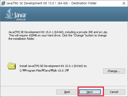 변수 값 : C:\Program Files\Java\jdk-15.0.1