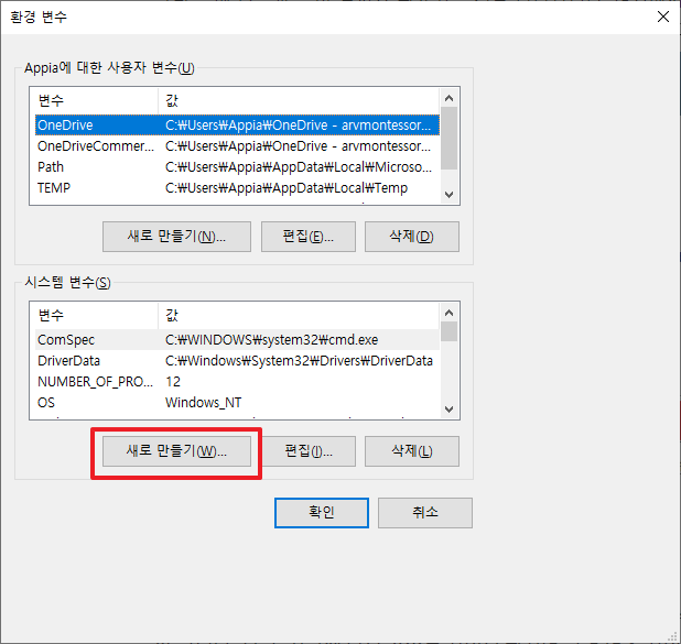 [윈도우10 Windows10] 환경변수 설정하기 및 확인하기