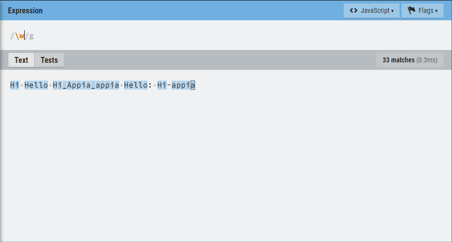 이와 같이 \w의 경우 문자와 위의 표에서와 같이 모든 알파벳과 숫자 그리고 _부분을 나타내줍니다.