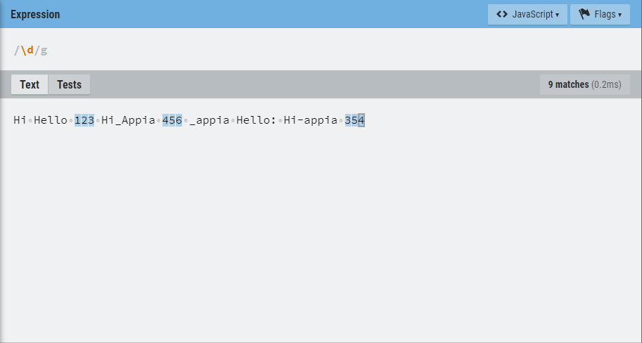 이와 같이 \d의 경우 숫자 부분을 선택합니다.