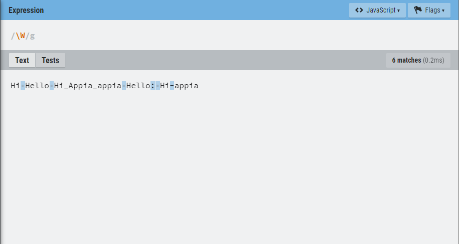 이와 같이 \w의 경우 문자와 위의 표에서와 같이 모든 알파벳과 숫자 그리고 _부분을 제외하고 모든 표현을 해줍니다.