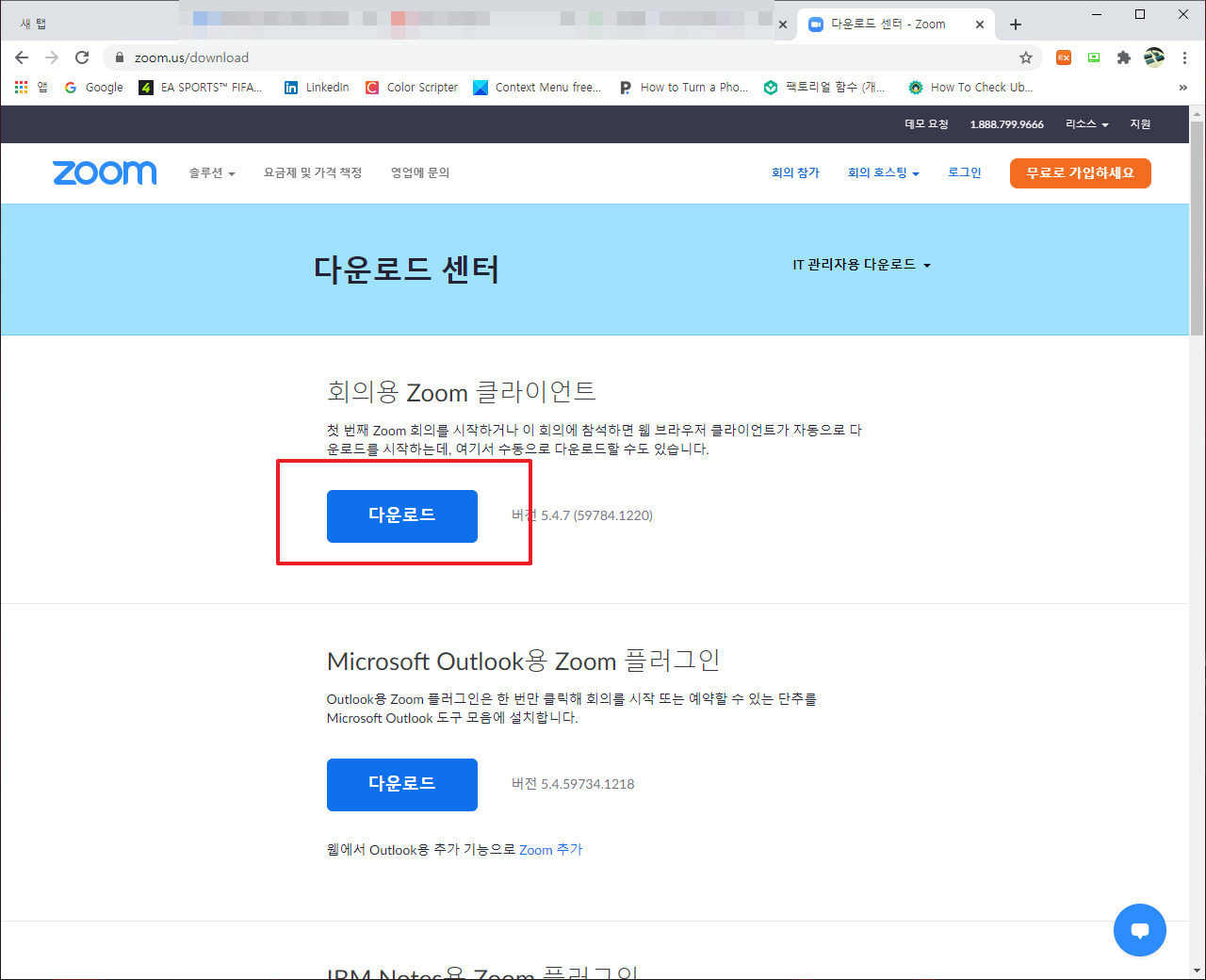 먼저, 다음 링크을 통해서 Zoom 다운로드 링크를 클릭하여 주시길 바랍니다.