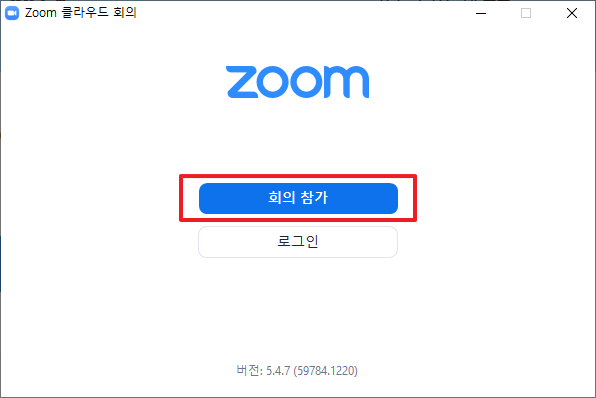 설치가 진행되고 나면, 바로 화면이 나타납니다. 그럼, 다음 화면에서 [회의참가] 부분을 클릭하여 주시길 바랍니다.