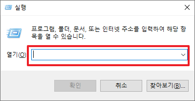 먼저 키보드 좌측 하단에 있는 [Windows]키와 [R]키를 동시를 눌려줍니다. 그럼 다음과 같이 실행 아이콘이 나타날 것입니다.