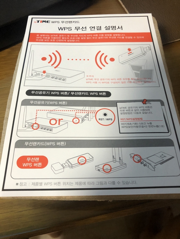박스를 개봉하면 다음과 같이 설명서가 처음 보입니다. 이 부분들은 WPS 무선 연결에관련된 기능입니다. 그럼 설명서를 빼보면 다음과 같은 포장이 되어 있습니다.