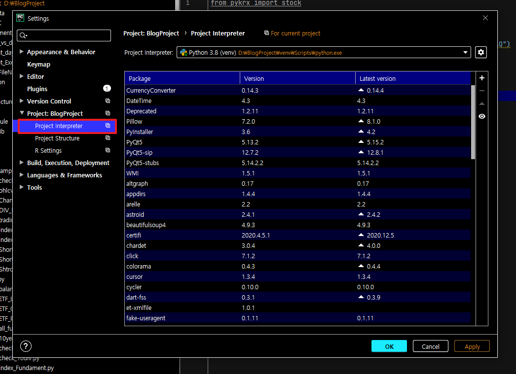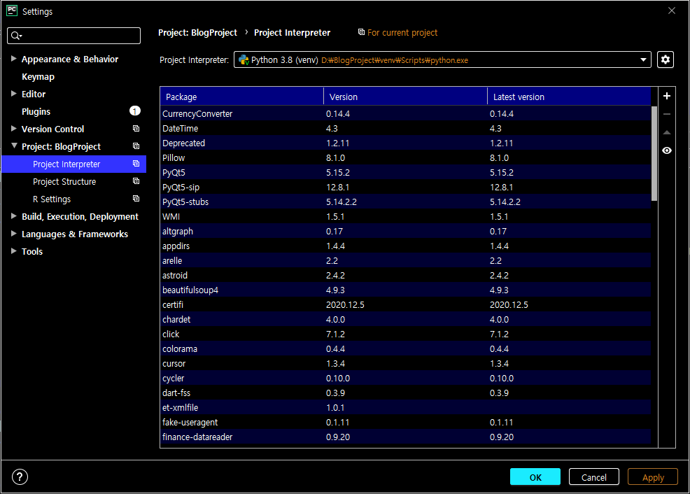 파이썬[Python] 파이참을 이용하여 모듈의 버전 확인 및 업데이트 하기 본문