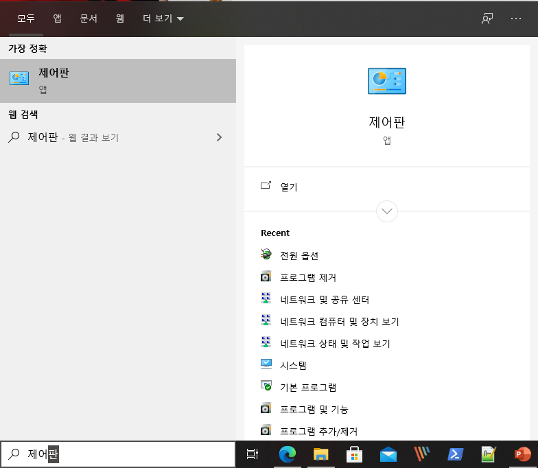최초에 [윈도우 키]를 누르시고, 나서 "제어판"을 타이핑 하여 제어판 메뉴를 검색하신 후 [제어판]을 실행해 주시길 바랍니다.