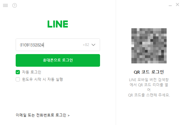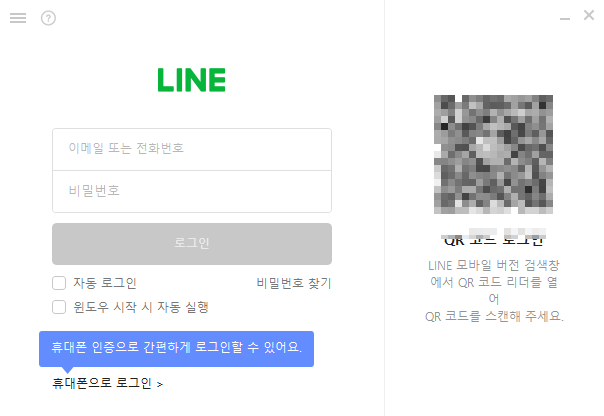 그런 후에 다음과 같이 로그인을 할 수 있게 화면이 나타납니다. 단, 하나 주의 하셔야 할 점은 반드시 휴대폰으로 라인을 설치하시고 가입을 하셔야지만 사용이 가능합니다.