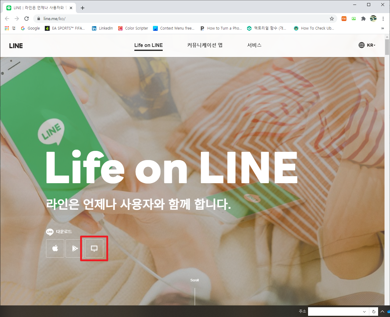 먼저, 다음 링크을 클릭하여 라인(Line)홈페이지에 방문하여 주시길 바랍니다.
