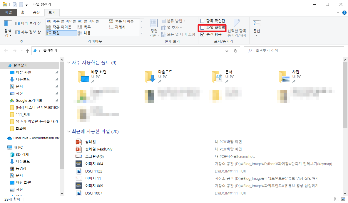 [윈도우10 Windows10] 파일의 표시할 때, 확장자,확장자명 표시하기