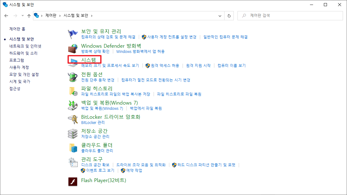 위에서 [시스템 및 보안]부분을 클릭하시면 다음과 같은 화면이 나타납니다. 여기에서 [시스템]부분을 클릭하여 주시길 바랍니다.