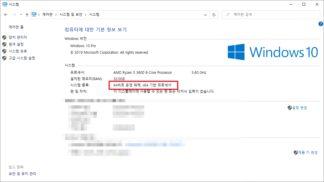 [윈도우10 Windows10] 설치된 윈도우 32bit(32비트)인지 64bit(64bit)인지 확인하기