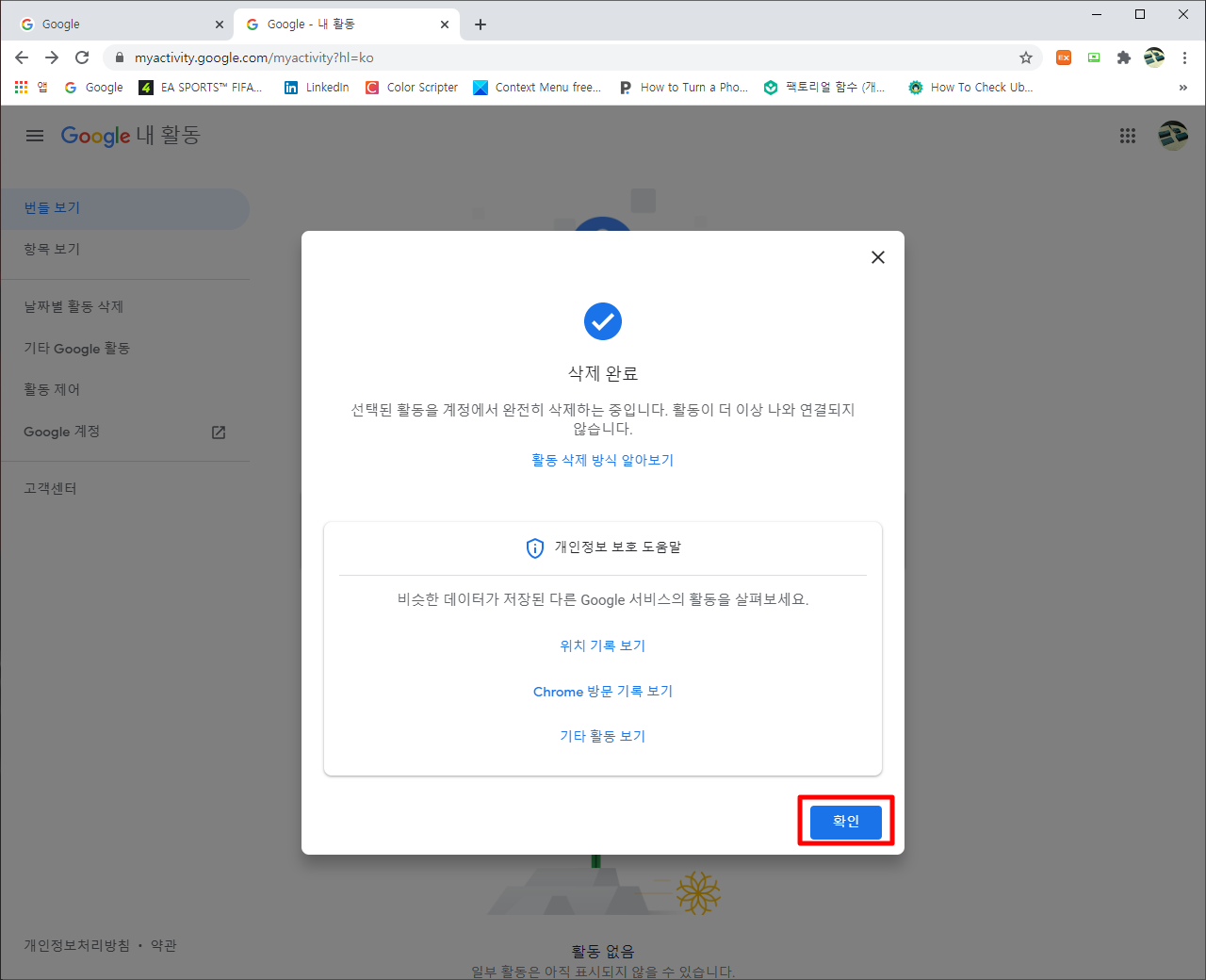 [윈도우10 Windows10] 구글 계정에 저장되는 활동 기록 지우기