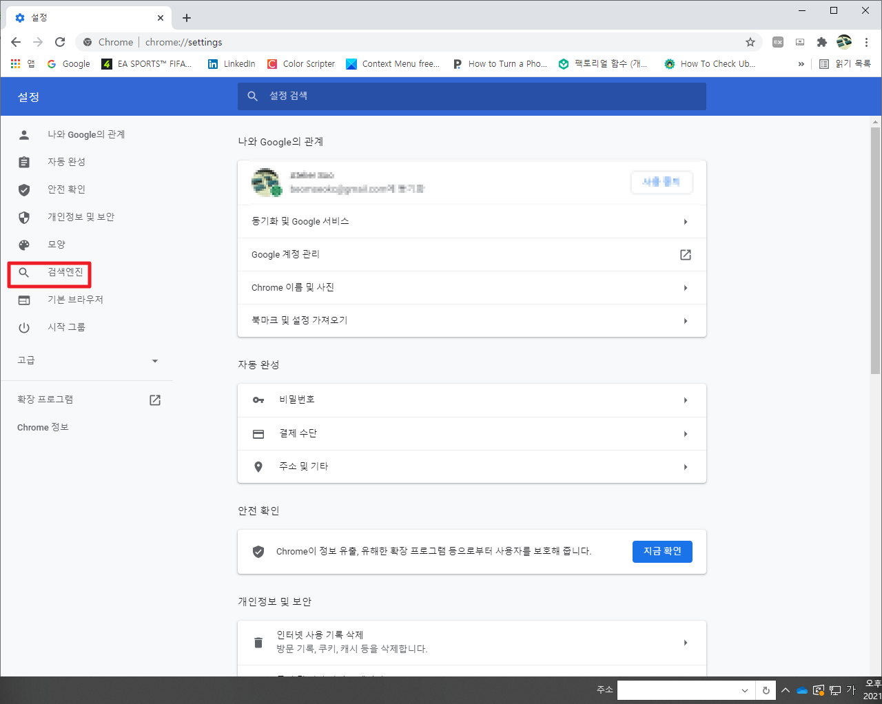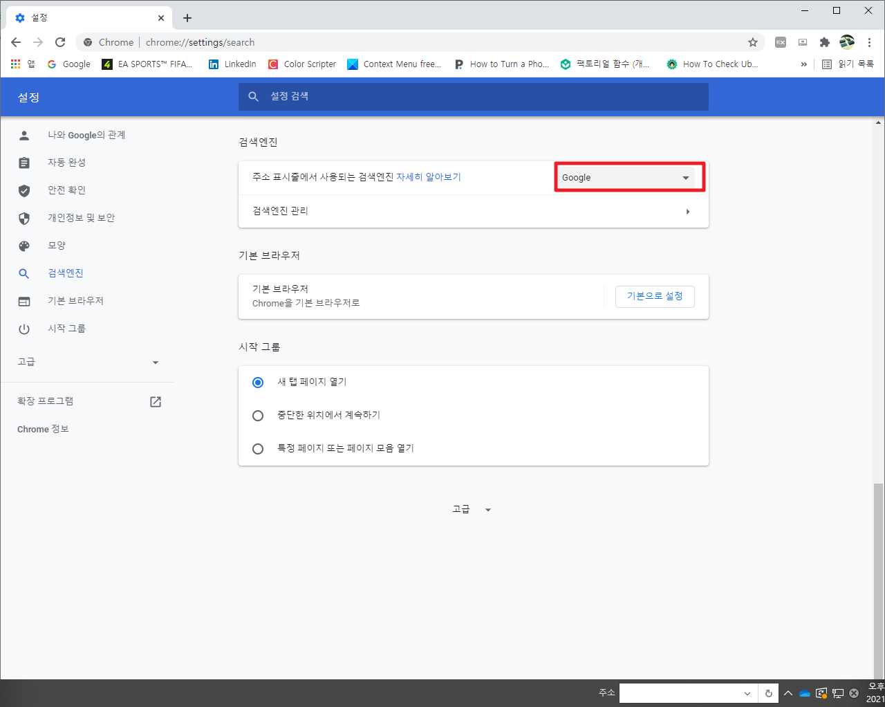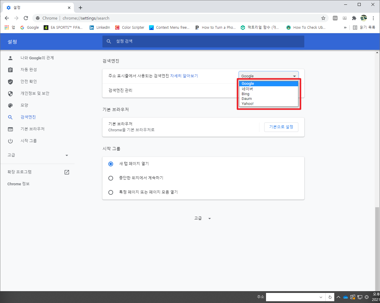 [윈도우10 Windows10]크롬(Chrome) 기본 검색엔진 변경하기