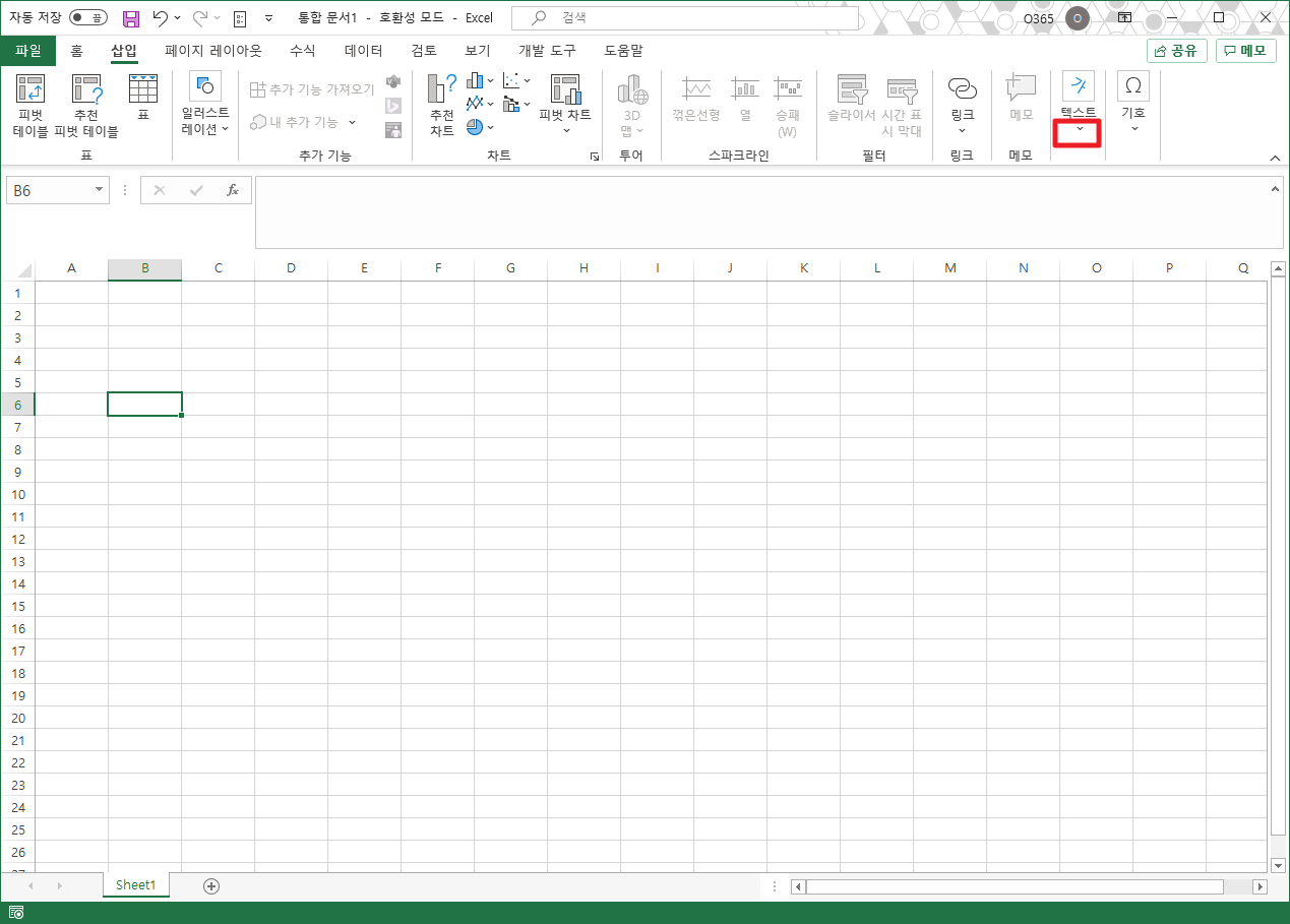 먼저, 엑셀을 실행시켜주시길 바랍니다. 만약에 엑셀을 실행시키셨다면, 다음과 같은 화면이 나타날 것입니다. 그럼 여기에서 상단에 [삽입] 탭을 클릭하여 주시길 바랍니다.