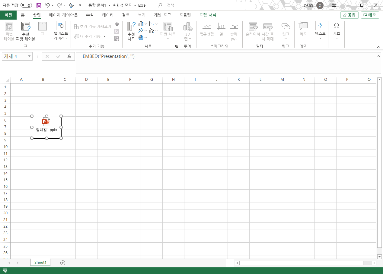 엑셀[Excel] 엑셀에 파워포인트 아이콘 모양으로 파워포인트 파일 삽입하기