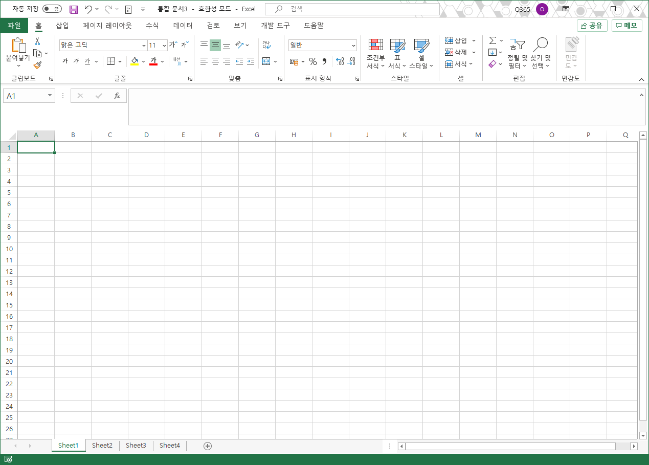 예전 버전에서는 엑셀 문서를 처음 생성하면 세개의 시트(Sheet)개 존재하였습니다. 하지만, 어느 시점부터(현재 제가 사용하고 있는 버전은 364버전)인지 몰라도 그런 법칙들이 사라지고, 한개의 시트(Sheet)만 생성이 됩니다. 물론, 이 부분이 훨씬 더 경제적일 수도 있다고 생각합니다. 하지만, 저같이 예전 버전의 레트로 느낌을 가지고 있는 사람들은 예전의 3개가 생성되던 것을 그리워 할 수있습니다.