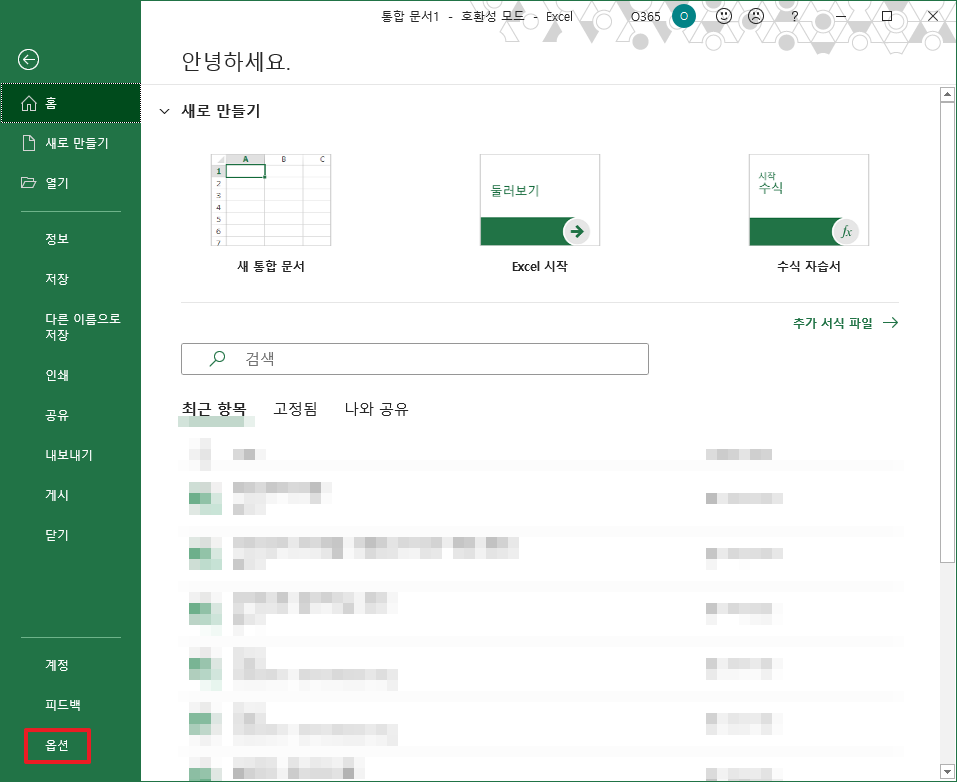 엑셀[Excel] 365 기본 저장 파일 형식 설정하기 종종 회사에서 업무를 하다보면, 다른 사람들과 다른 버전의 소프트웨어를 사용하는 경우가 있습니다. 이럴 경우, 버전을 맞추거나 호환 가능한 파