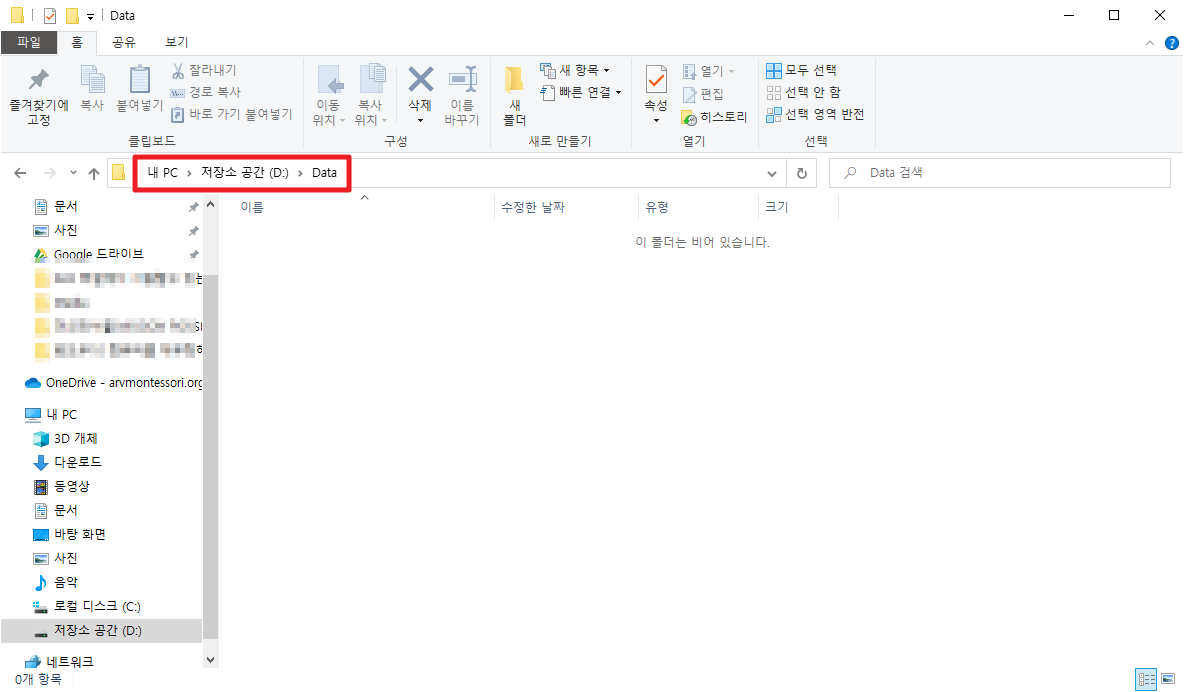 그래서 다음과 같이 윈도우 탐색기등을 통해서 경로를 선택하셔서 미리 복사해두셔서, 붙여 놓기를 하시는 것을 권장합니다.