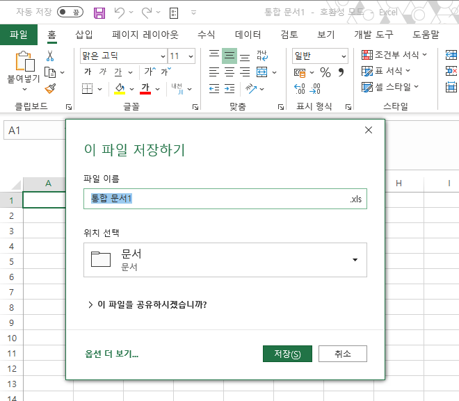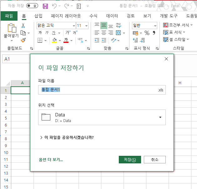 그럼 새문서를 열고 다시 저장 버튼을 눌렸을 때, 다음과 같은 화면이 나타날 것입니다.