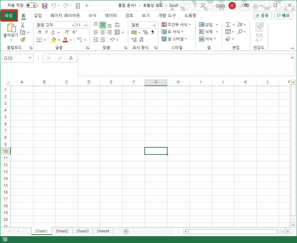 먼저, 화면 상단에 있는 [파일]탭을 클릭하여 주시길 바랍니다.