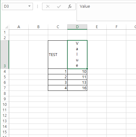 먼저, 데이터를 세로로 표시할 셀에 대해서 선택을 해줍니다. 저의 경우 다음 보이는 빨간색 상자에 있는 "Value"부분에 대해서 값을 세로로 나타낼 것입니다.