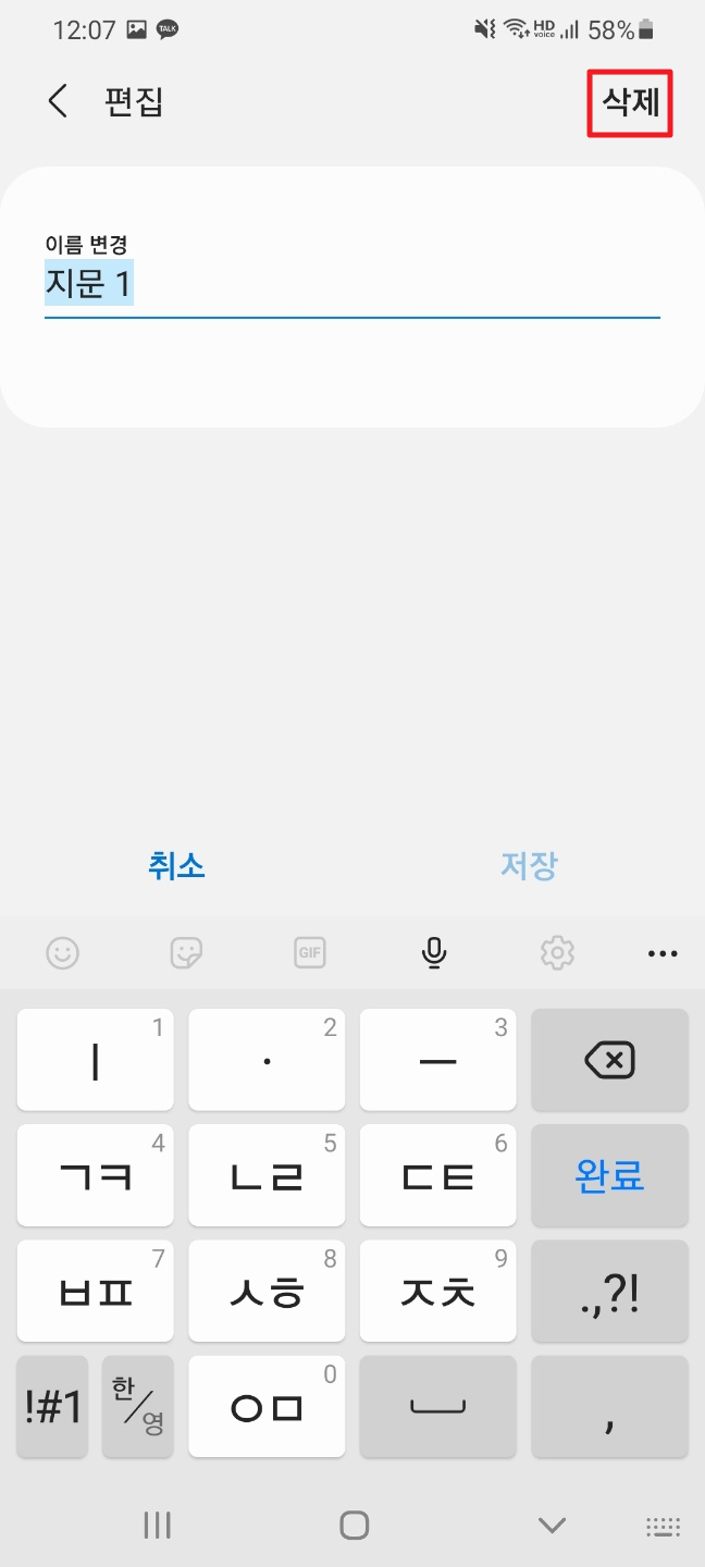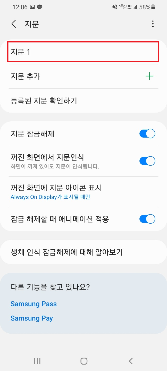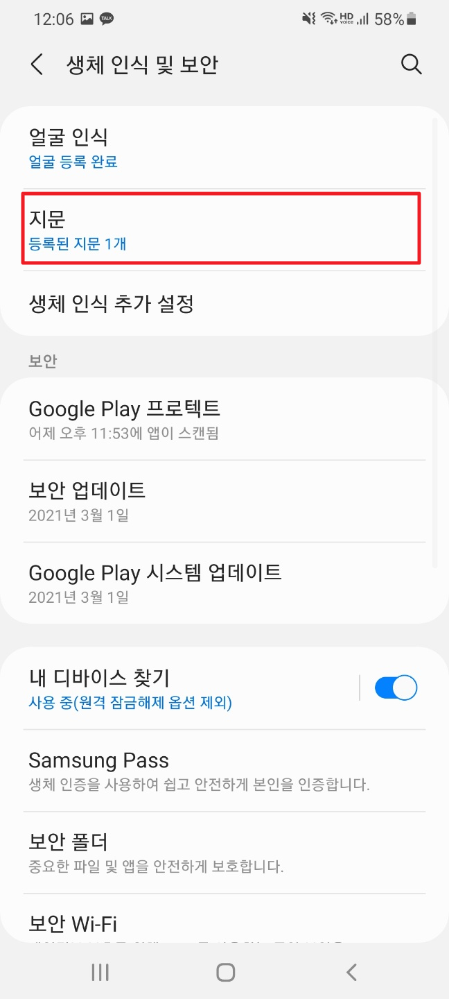 안드로이드(Android) 등록된 지문 삭제하기
