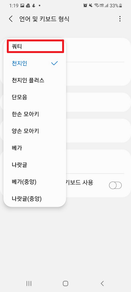 안드로이드(Android) 한글 키보드 천지인에서 쿼티 키보드로 변경하기