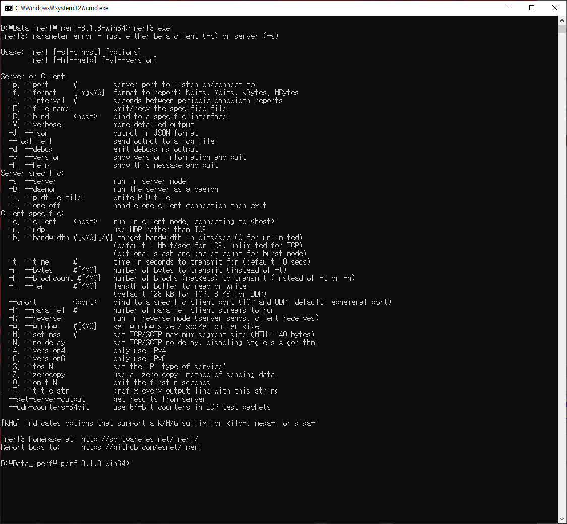 [윈도우10 Windows10] iPerf 다운로드 받고 설치하기